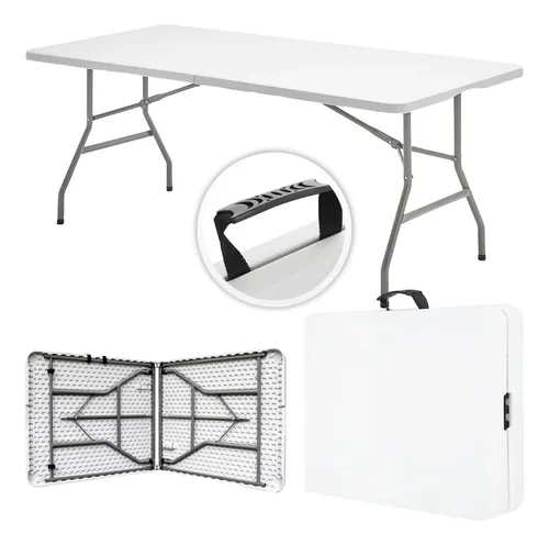 Práctica y ligera: la mesa plegable y el tamaño desplegado es de 1.80 cm de largo x 0.74cm de ancho x 0.75 cm de alto. No requiere montaje y se puede abrir y plegar en unos segundos. No solo eso, también tiene suficiente espacio para acomodar a unos 8 adultos.